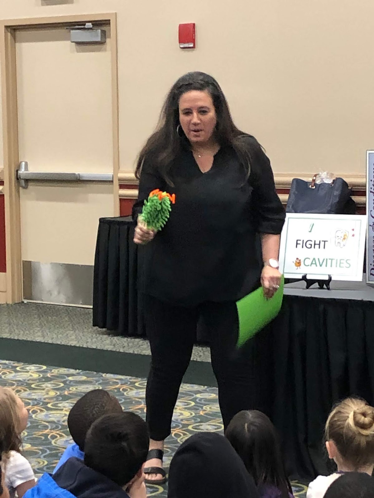 All hands on deck as Melissa Haws teaches about brushing teeth |